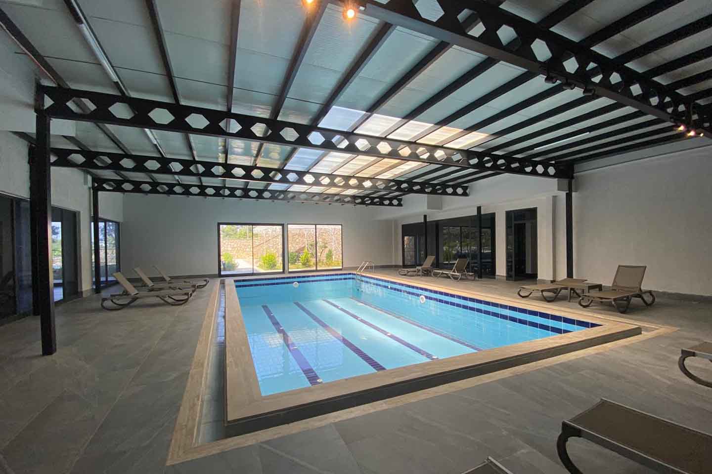 Havuz barı bulunan kapalı ve açık yüzme havuzları